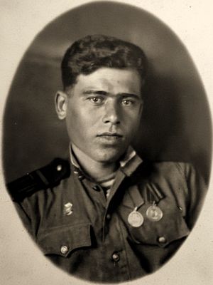 «За храбрость и мужество при овладении г. Расин, смелые и решительные действия в разведке противника. Действуя в составе отделения, участвовал в ликвидации диверсионной группы в районе складов. Достоин награждения медалью «За боевые заслуги».
