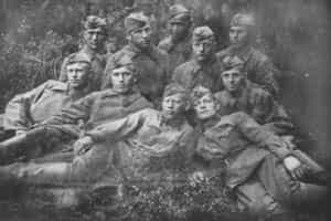 Второе фото снято во время ВОВ. На фото Сулейман эмдже — он в верхнем втором ряду крайний слева.