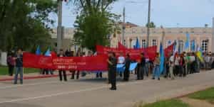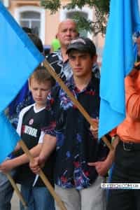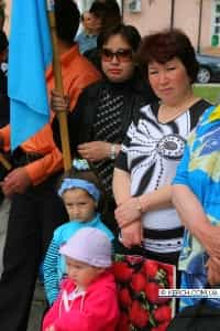 После молитвы, которую совершил мулла у памятника, траурное шествие (в количестве около 150 человек) с национальными флагами, символикой государственности крымских татар и транспарантами двинулось к площади им. Ленина, где прошел митинг.